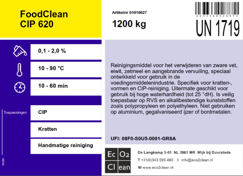 Reinigingsmiddel voor het verwijderen van zware vet, eiwit, zetmeel en aangebrande vervuiling.