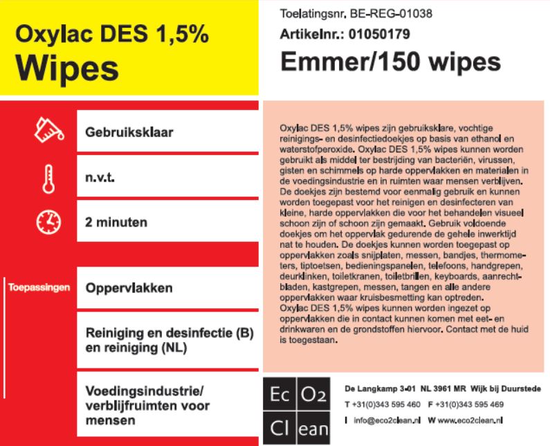 Gebruiksklare, vochtige hygiënische reinigingsdoekjes, bevatten melkzuur en waterstofperoxide