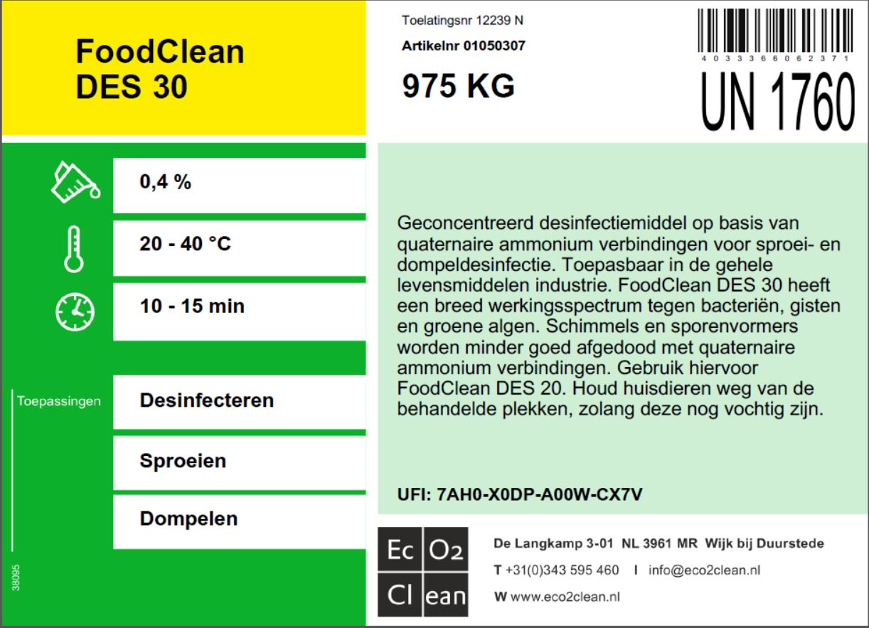 FoodClean DES 30, 975 kg dw