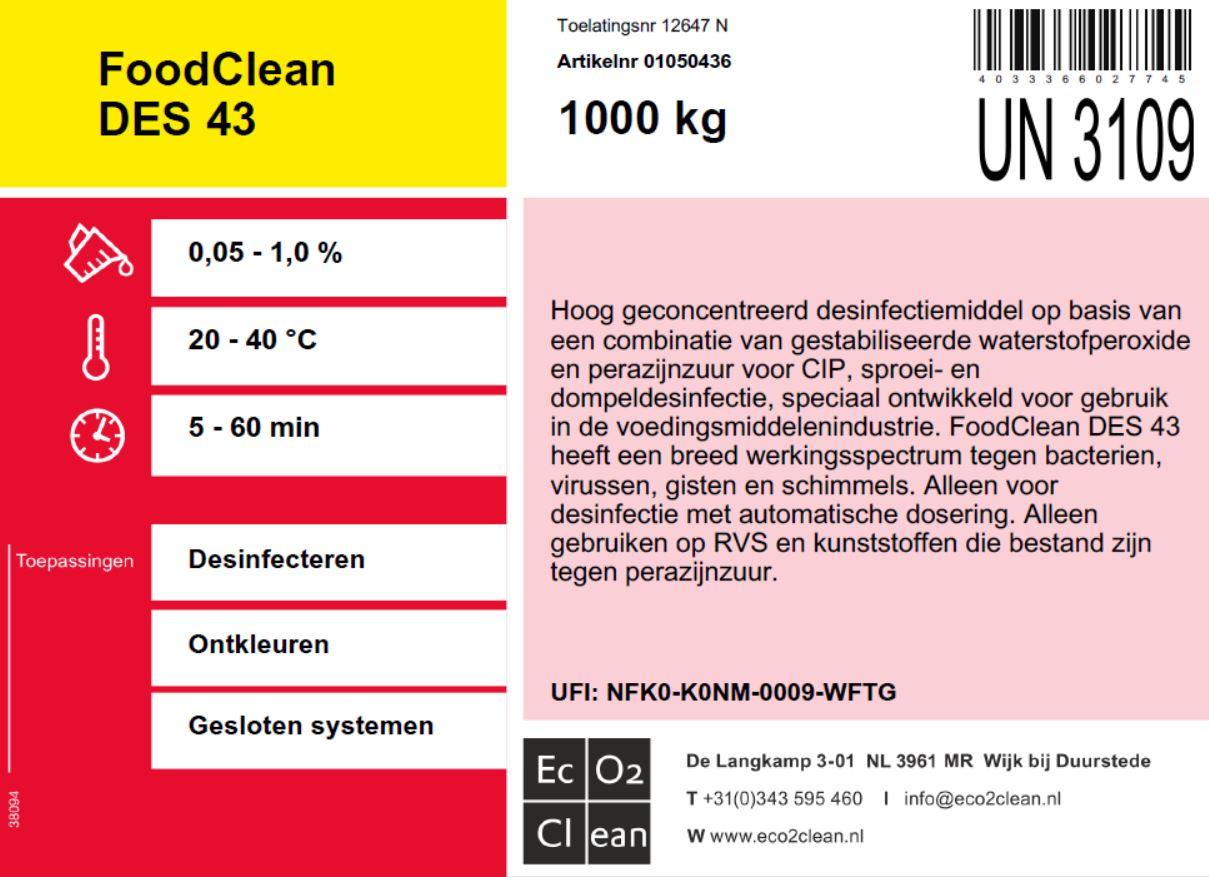 Sterk zuur desinfectans op basis van gestab. waterstofperoxide en perazijnzuur, inclusief lans....