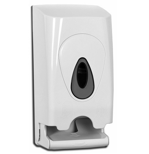 Kunststof toiletrolhouder voor 2 standaard toiletrollen (10 cm breed, 400 coupons/rol), kleur wit. Afmeting: 148 x 315 x 150 mm (b/h/d).