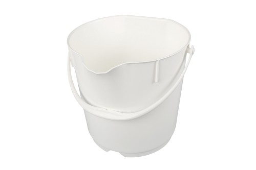 Nestbare emmer met schenkmond. De emmer heeft een open voet waardoor de luchtstroom onder de emmer komt en vocht weg kan.